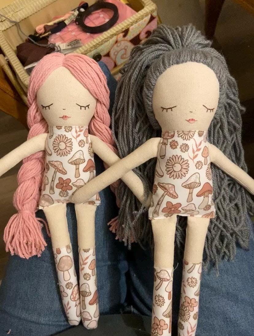 Love this pattern! I was intimidated and so excited. I sew some with a sewing machine and am new to following patterns and had attempted (failed) embroidery once. I made these dolls for my girls in the midnight hours over the course of a couple weeks. It took me longer than I anticipated but I did them at the same time and now that I’ve done a couple I think it may go a little faster. The first embroidered face for example took me forever and the second one felt quick. Overall well explained and I very much appreciated the photos. Would definitely recommend and am interested in purchasing more patterns from this seller! I am proud of how they turned out
