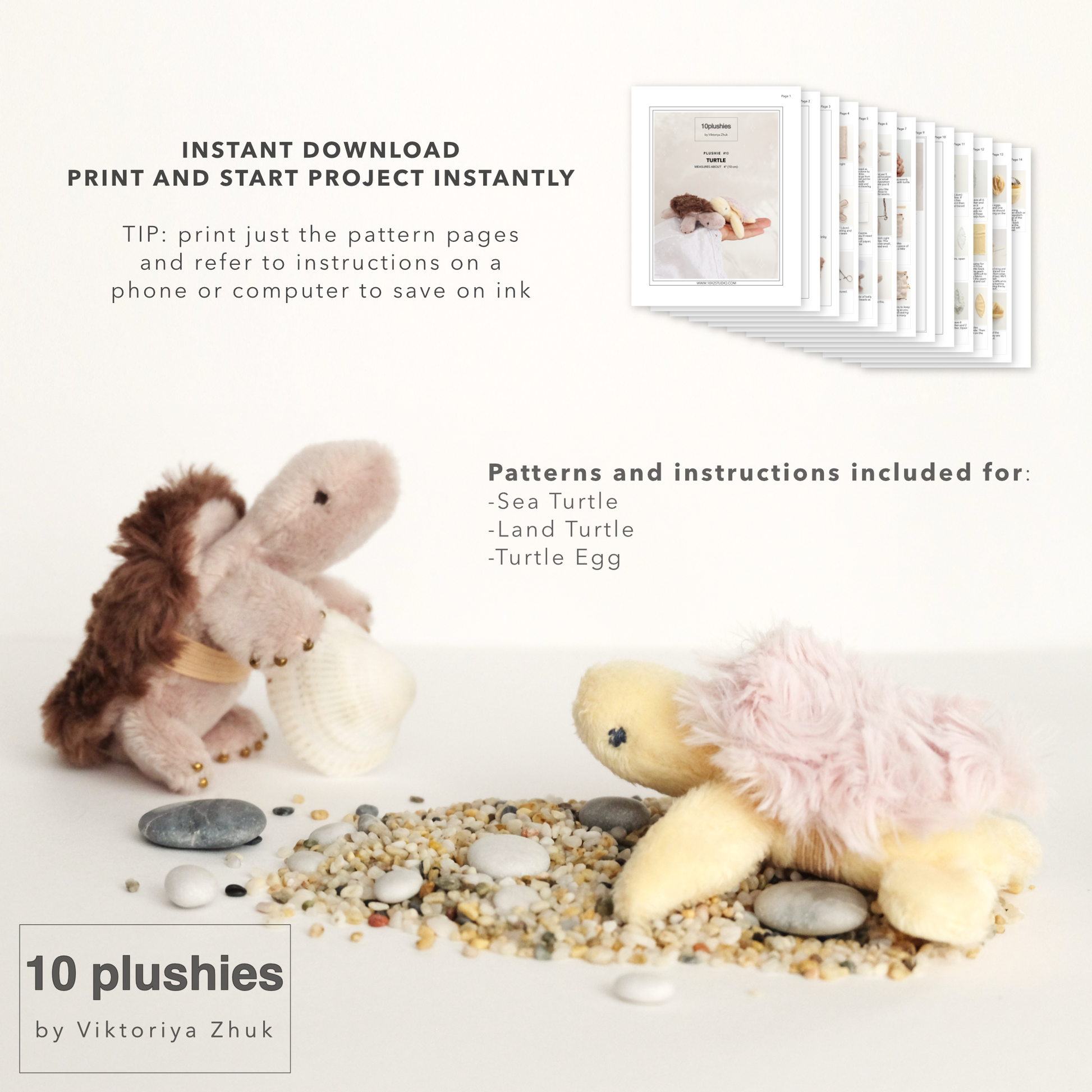 Patterns and Photo instructions for the Sea Turtle, Land Turtle, and Turtle Egg